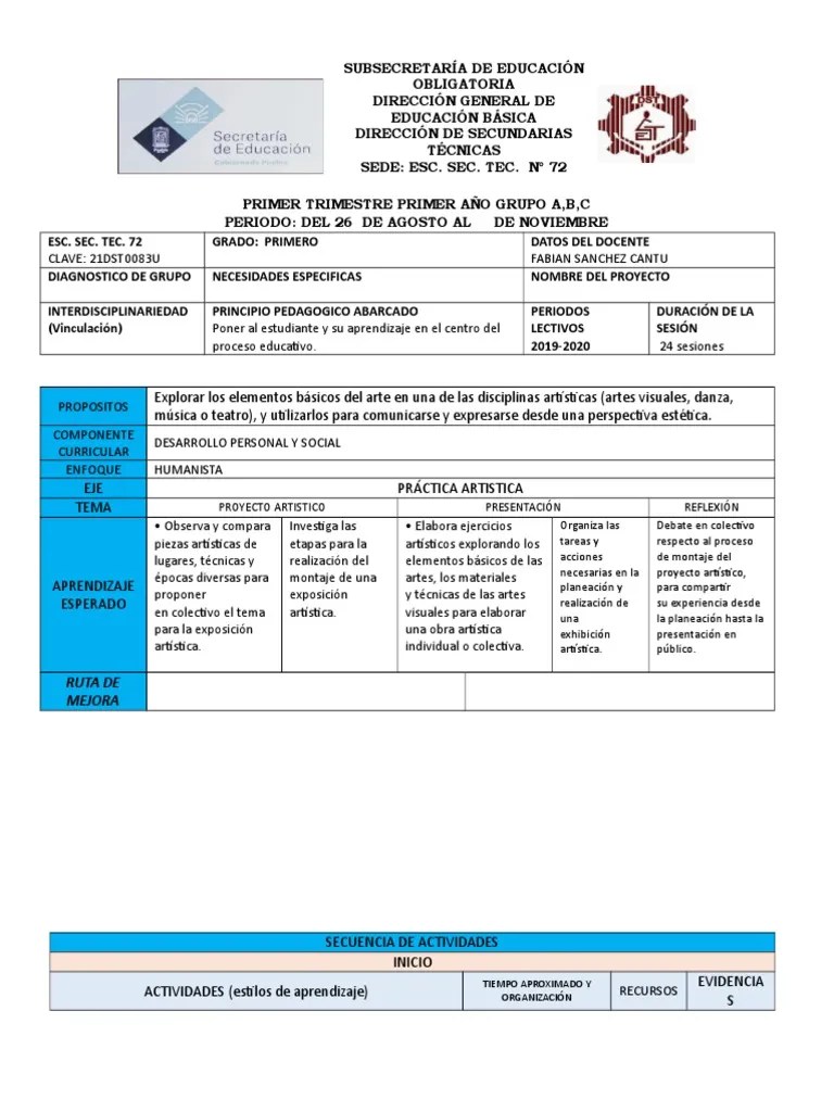 Sep 15, 2020 · #pontealdía con la repetición del programa #aprendeencasa2 de 1° grado de secundaria en la materia de #artes Les comparto la nueva planeacion trimestral de la asignatura de artes para primer grado (semana de diagnóstico) nueva planeacion trimestral artes. Las artes visuales francisco de goya 1. Entrada más reciente entrada antigua... Razones que fundamentan la presencia de la asignatura en la currícula del colegio.